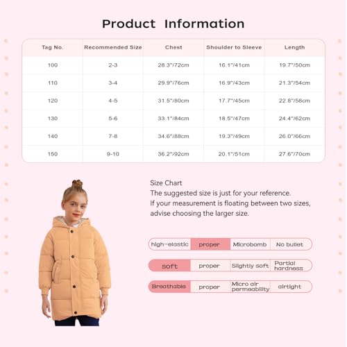Hularka Kids Girls Winter Thicken Warm Hooded Coat Long Puffer Down Jacket Parka Waterproof Windbreaker Outerwear 7