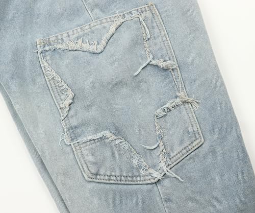 More information about Womens Baggy Y2k Jeans Star Patch Denim Pants Big Pocket Cargo Jeans Vintage High Waist Jeans