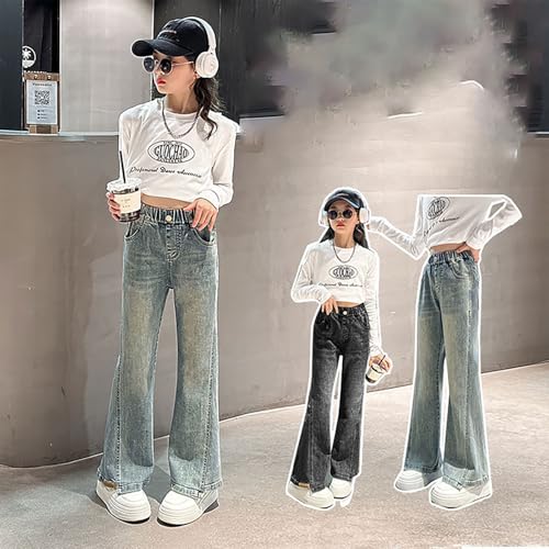 Teen Girls Flare Jeans High Waisted Wide Leg Baggy Jeans for 5 to 16 Years Stretchy Denim Pants Washed Bell Bottom 7