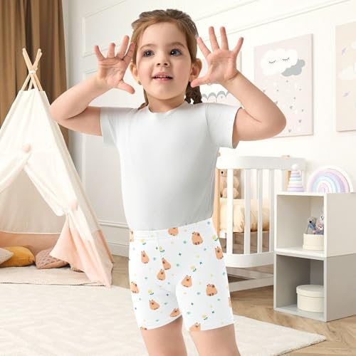 Cute Cartoon Little Capybara Girls Shorts Elastic Waist Sports Shorts Girls Leggings Pants for 4-10 Years 4