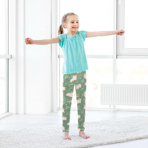 Cute Pink Pig Girls' Leggings Toddler Doodles Flowers Kids Yoga Pants Dance Active Tights 4T 7