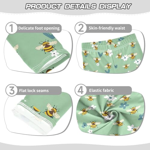 CaTaKu Girls Leggings Bees Floral Heart Leggings for Girls Kids Athletic Workout Yoga Pants Size 4-10T 2