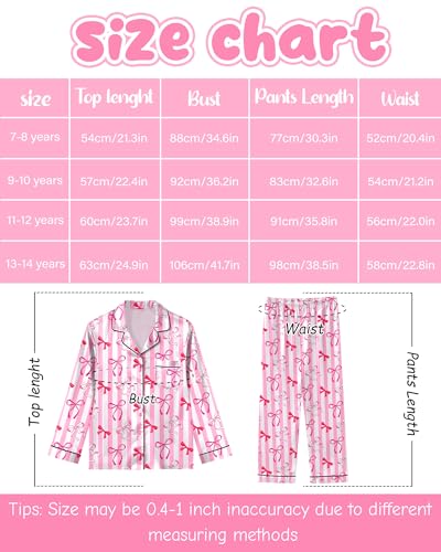 • 3.Age for Kids Pajamas set: Girls pajamas set is fit for your girls from 7 to 14 years old, please refer the size information as below description.