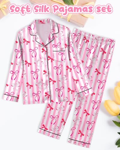 More information about Girls Pajamas Silk PJS Set Satin Sleepwear Long Sleeve Jammies for Kids Button-Down Nightwear Loungewear 3-16 Years