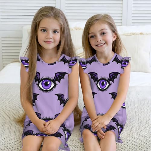 Augenstern Flutter Sleeve Nightgown Pajama Gown Cartoon Evil Eye Easy Pull-On Sleepwear Nightdress 5