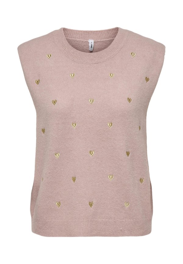 HOT ! ONLMELODY EMBROIDERY O-NECK - Top - rose smoke detail light gold hearts