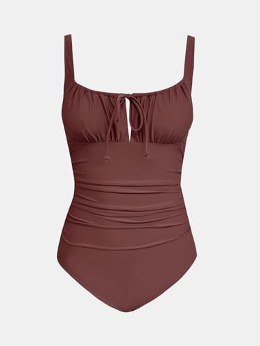 • Design: The Ruched One Piece Swimsuit Design with Drawstring Self Tie on Front and Square Neck Flattering on The Beach ; This Cutout Bathing Suit Featureds Adjustable Straps and Back Hook