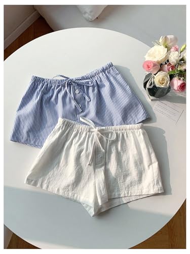 HOT ! MakeMeChic Women's 2 Pack Linen Shorts Summer Beach Pajama Boxer Shorts