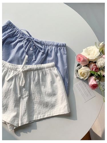 MakeMeChic Women's 2 Pack Linen Shorts Summer Beach Pajama Boxer Shorts 6