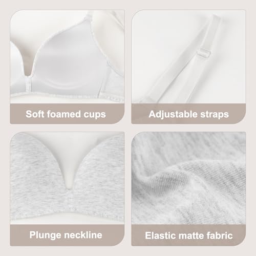 Eleplus 3 Pieces Lightly Lined Wireless Bras for Women Comfy Plunge T Shirt Bra Pack 4