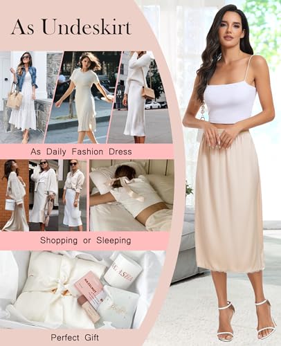 • ❀【IDEAL GIFT】This versatile silk women's half slip is suitable for all occasions, also known as long slip, nightdress, casual dress, skirted dress, under skirt dress. It is also a perfect wardrobe gift for your wife, lovers, girlfriends and friends during the lovely holiday season.