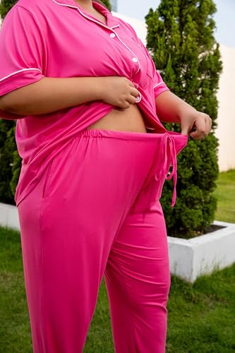 Vozanet Women's Plus Size Pajamas Button Down Shirt and Pants Soft Lounge Sets Bride Nighty Bottom with Pockets 1x to 5x 4