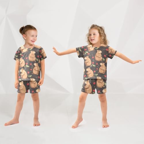 ALAZA Capybaras Cherry Fruit Pajamas Short Sleeve 2 Piece Sleepwear Top and Bottom Pajama Set Unisex 6