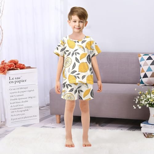 ALAZA Lemon Leaf Fruit Yellow Cartoon Pajamas Short Sleeve 2 Piece Sleepwear Top and Bottom Pajama Set Unisex 6