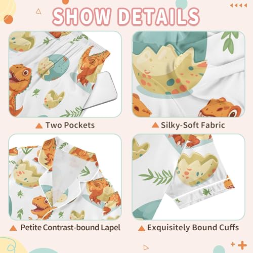 ALAZA Dinosaur with Egg Leaves Pajamas Satin Pajama Set Short Sleeve Button Down Sleepwear 4