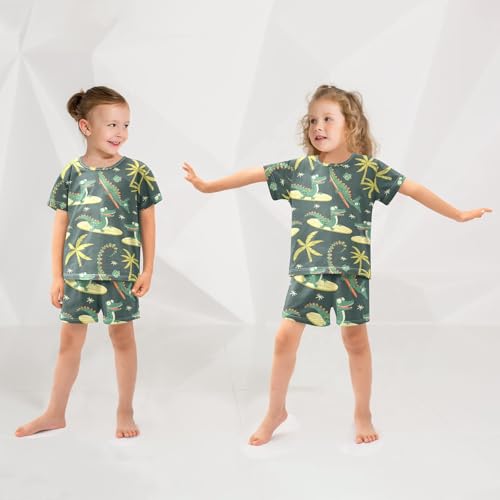 ALAZA Crocodile Surfer Cartoon Pajamas Short Sleeve 2 Piece Sleepwear Top and Bottom Pajama Set Unisex 2