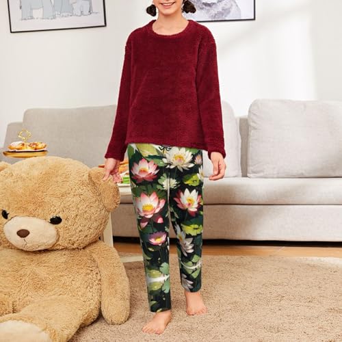 Pajama Pants Pajama Bottoms with Elastic Waistband Sleepwear Lounge Pants, Lotus Flowers Leaf 2