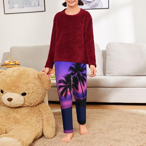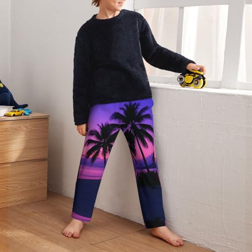 HOT ! Pajama Pants Pajama Bottoms with Elastic Waistband Sleepwear Lounge PantsBeach Coconut Trees Sunset