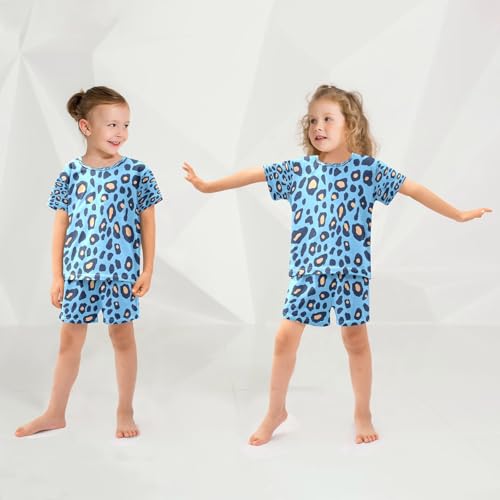 senya Short Sleeve Pajamas Sets Summer Cotton Sleepwear Blue Leopard Skin 2