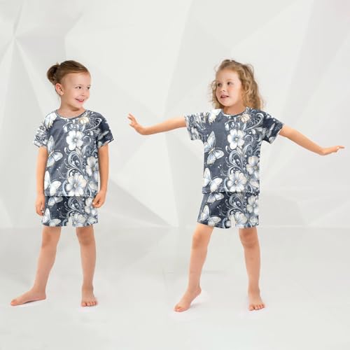 Short Sleeve Pajamas Sets Summer Cotton Sleepwear Denim Background Ornate Floral 1