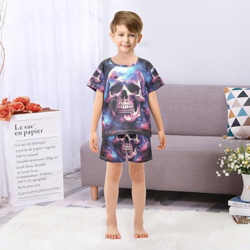 ALAZA Skull on Space Background Pajama Set Short Sleeve Sleepwear Soft Lounge Nightwear 3