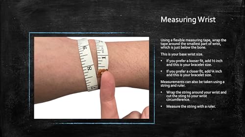 • SIZE: Bracelet is 21 cm long, or 8.27 inches, including the clasp and will fit a 6 3/4 - 7 1/4 inch wrist. The max inner measurement is 7 1/4 inches so this size will not fit a wrist larger than 7 1/4 inches and may be too loose if your wrist is less than 7 inches. Bracelet fit is generally a 1/4 to 1/2 inch bigger than your wrist, or where you prefer to wear it on your forearm. Refer to measurement picture in listing and measure your wrist to ensure proper fit.