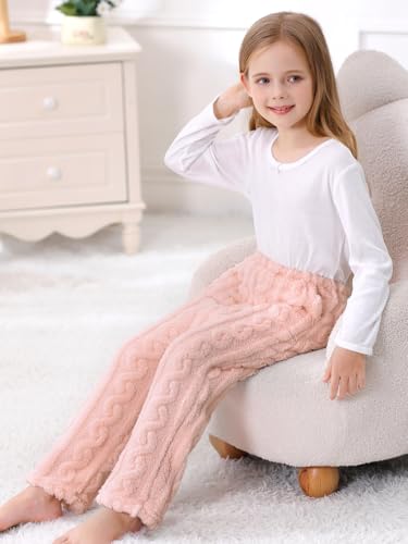 Umeyda Girl's Women's Fuzzy Pajama Pants Elastic Waist Fleece Plush Loungewear Pj Pants with Pockets, 6Years-XL 6