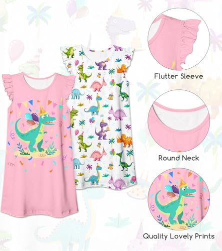 UNIFACO 2pcs Girls Nightgowns Flutter Sleeve Pajamas Dress Cute Sleepwear 4