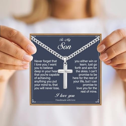 • Son Gifts: Cross necklace for son comes with everything you need to give the perfect gift, No need to gift wrapping again. Including a gift bag, gift box, dainty card, silver polishing cloth, and a blank note card enclosed in matching an envelope - takes just a minute to assemble