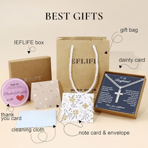 HOT ! IEFLIFE Cross Necklaces Gifts - Cross Necklaces Gifts for Men Him, Silver Cuban Link Chain Stainless Steel Cross Necklace Jewelry Anniversary Birthday Gift for Dad Husband Son Grandson Gift