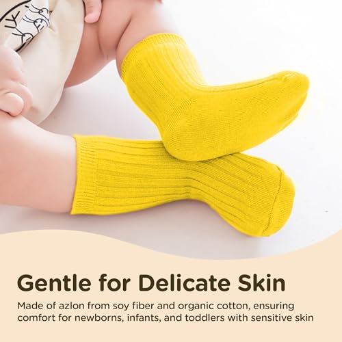 • Silky Soft & Gentle for Delicate Skin - Made of azlon from soy fiber and organic cotton, our baby boy and baby girl knee high socks ensure comfort for newborns, infants, and toddlers with sensitive skin.