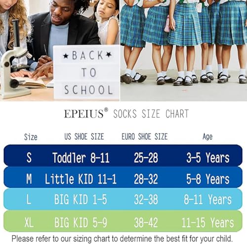 HOT ! EPEIUS Unisex Kids Crew Socks Boys Dress Socks Soft Cotton Seamless School Uniform Socks for Girls White Navy 5 Pairs
