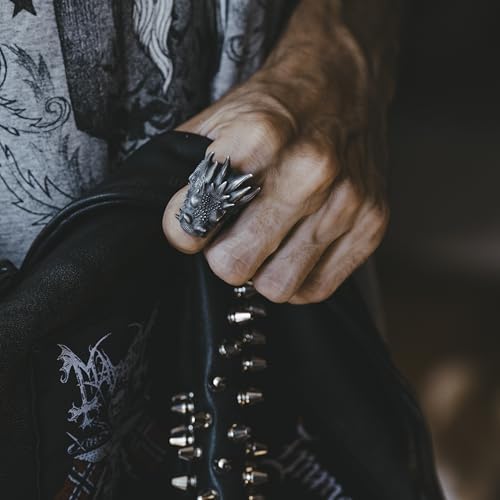BySilverStone - Huge Serpent Handmade Sterling Silver Mens Biker Ring, Dragon Mythology Ring, Dragon Gothic Ring, Punk Silver Men Jewelry, Gift for Men 7