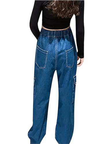 More information about Aislor Kids Girls Distressed Washed Baggy Wide Leg Cargo Jeans Elastic Waist Denim Pants Casual Loose Denim Trousers