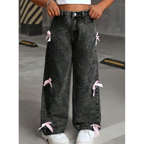 Bow Jeans for Girls Wide Leg Baggy Denim Pants Cute High Waisted Trousers,Cute Outfits for Girls 10-12,Bow Pants 6
