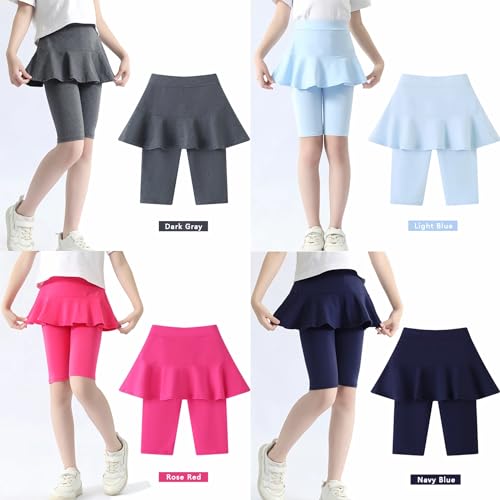 Girls' Knee Length Shorts with Skirt Capri Leggings Kids Summer Casual Sports Shorts 3-11 Years 4