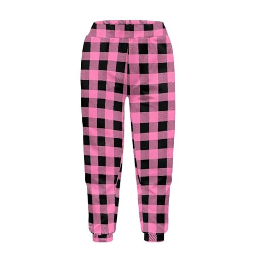 AmzPrint Red Black Buffalo Plaid Sweatpants for Girls Ugly Christmas Sweatpants Elastic High Waist Joggers Pants with Pockets 6