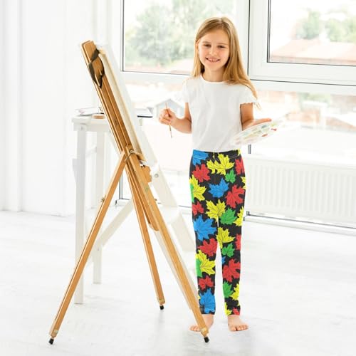 Maple Leaf Yellow Red Green Blue Girls Casual Leggings for Kids Printed Long Pant Bottoms Stretch and Soft 6