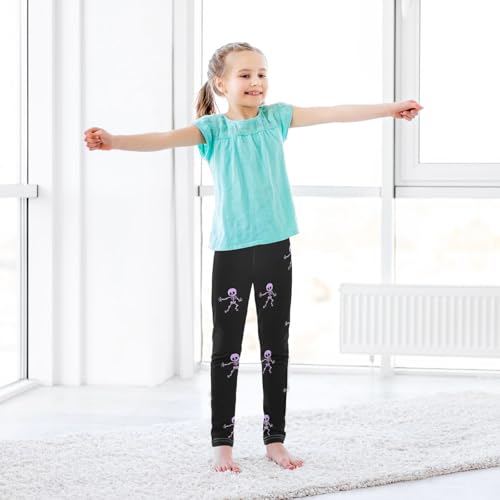 ALAZA Girls' Leggings Children's Yoga Pants Skinny Printed Dance Purple Skeleton Comfortable 4T 6