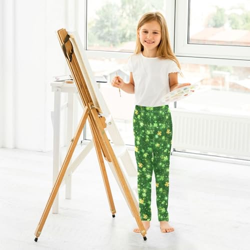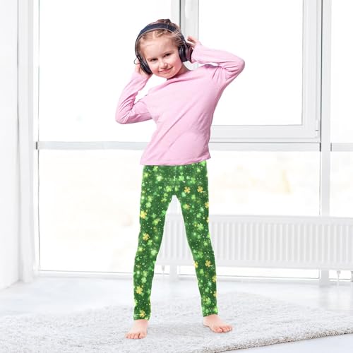 JUNZAN St.Patrick's Green Shamrocks Big Girls Athletic Leggings Stretchy Dance Active Tights Track and Field Practice 4T 4