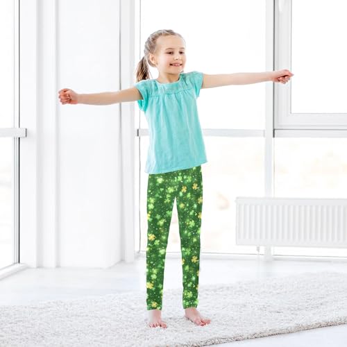 JUNZAN St.Patrick's Green Shamrocks Big Girls Athletic Leggings Stretchy Dance Active Tights Track and Field Practice 4T 6