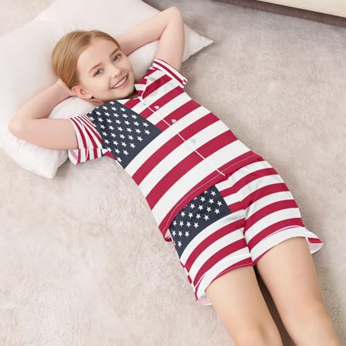 HOT ! ALAZA Hipster American Flag Satin Pajamas Set Short Sleeve Button Down Sleepwear Summer Pjs 2 Piece