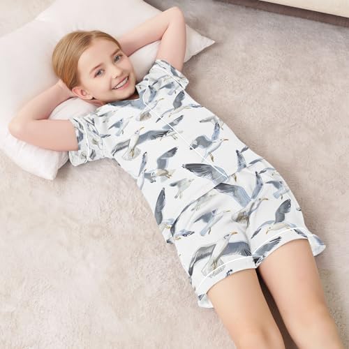 senya Many Seagulls Flying Satin Summer Pajama Sets Silk Short Sleeve Button Down Sleepwear 5