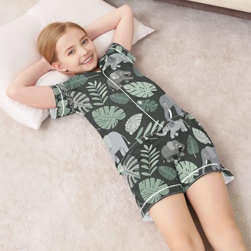 senya Tropical Elephant Satin Summer Pajama Sets Silk Short Sleeve Button Down Sleepwear 5