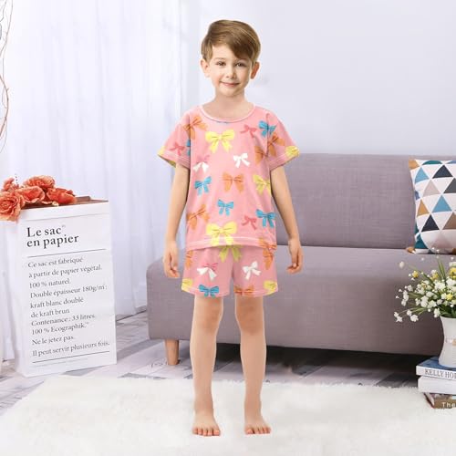 ALAZA Bow Cartoon Pajamas Set Short Sleeve Cotton Sleepwear Summer Pjs 2 Piece 5-14Y 2