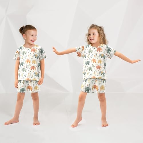 ALAZA Elephant Leaves Watercolor Pajamas Short Sleeve 2 Piece Sleepwear Top and Bottom Pajama Set Unisex 2