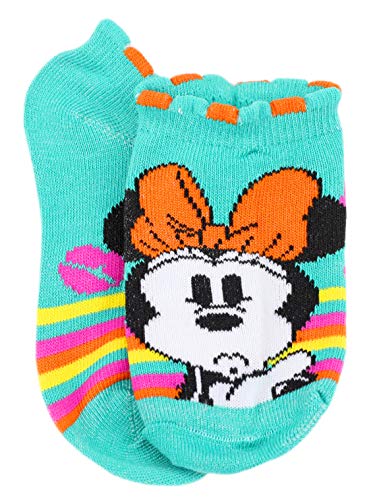 Disney Girl's Minnie Mouse 5 Pack No Show Socks, Small, White/Teal 6