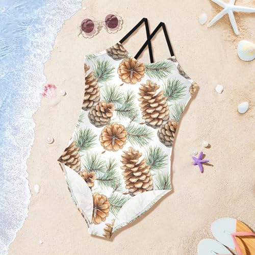 Yuiboo Girls Swimsuits 1-Piecing Bathing Suit Girl Toddler Girls Swim Suit Beach Swimwear Pine Cones Pine Branches 1