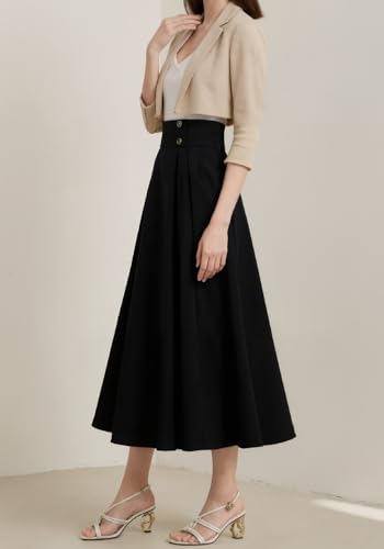 HOT ! Lucuna Women's High Waisted Long Skirt Buttons Elastic Waist Ruffle Casual Business Work Maxi Skirt