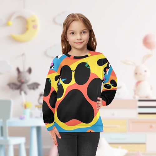 Wudan Colorful Dog and Paw Big Girls Sweatshirt Hoodie Crewneck Kids Pullover Hoodie 3